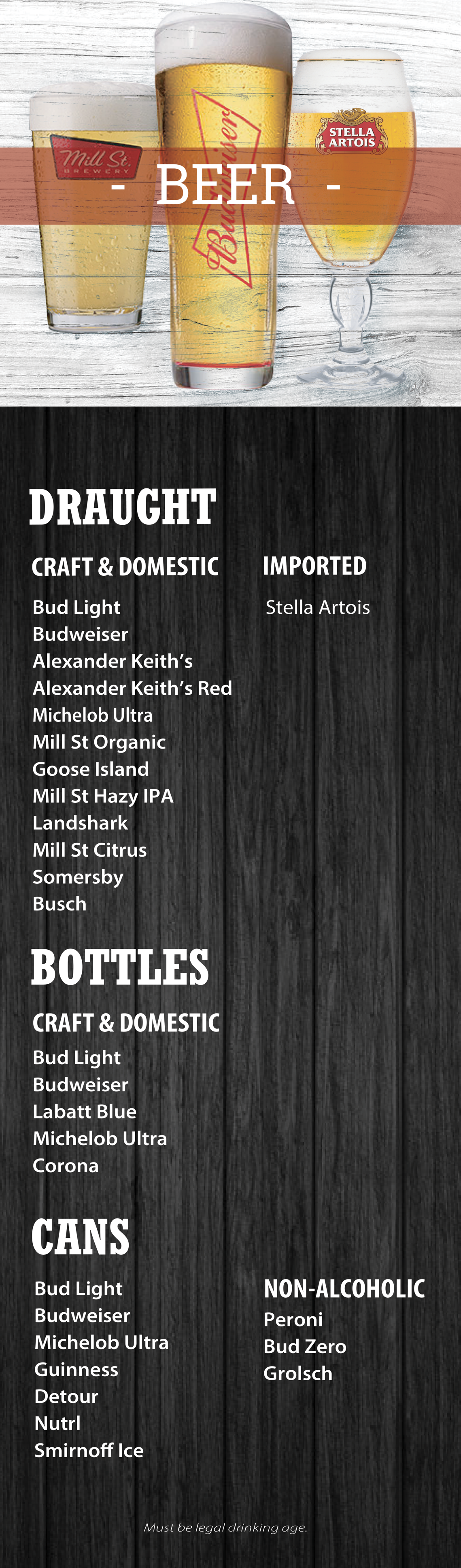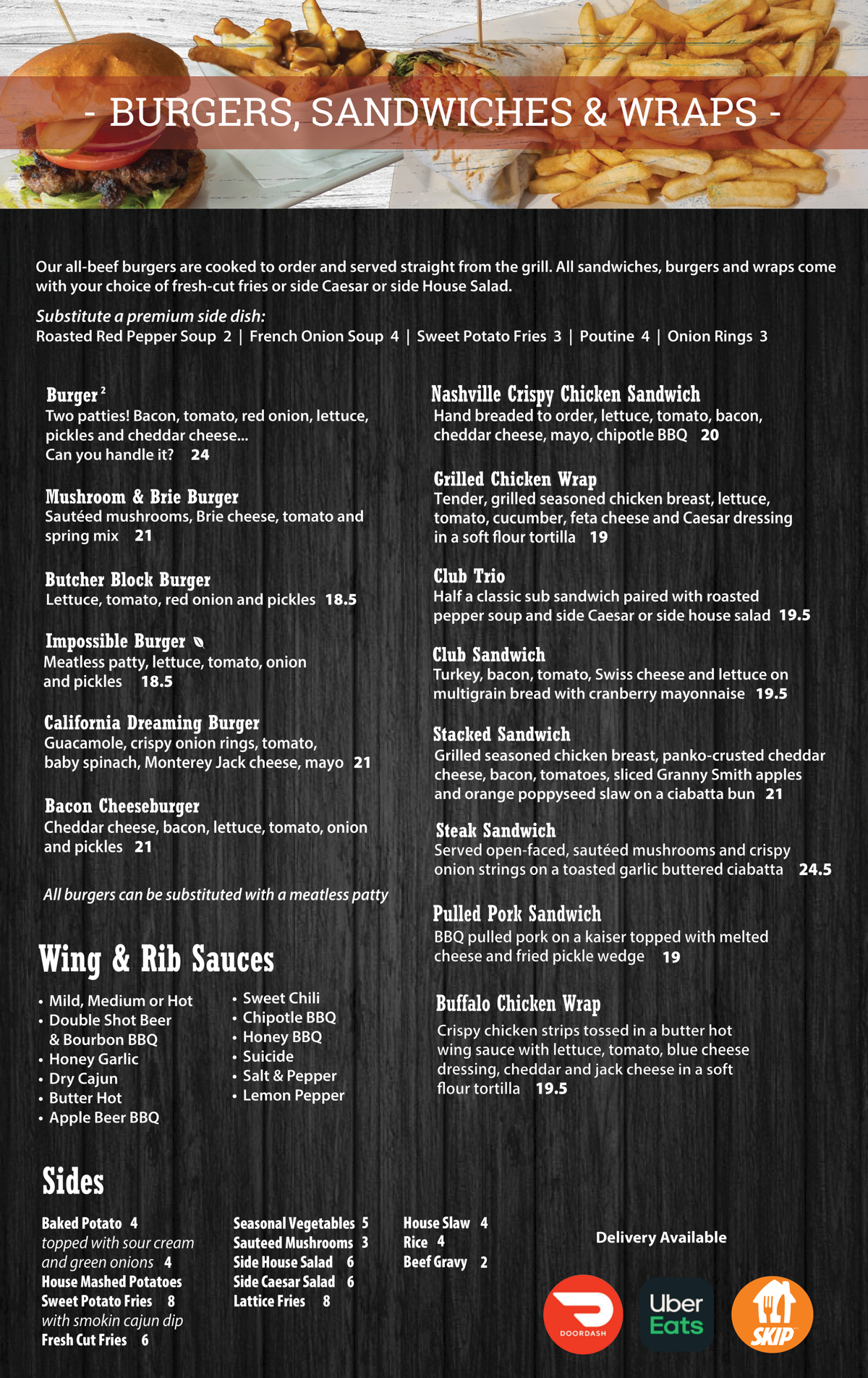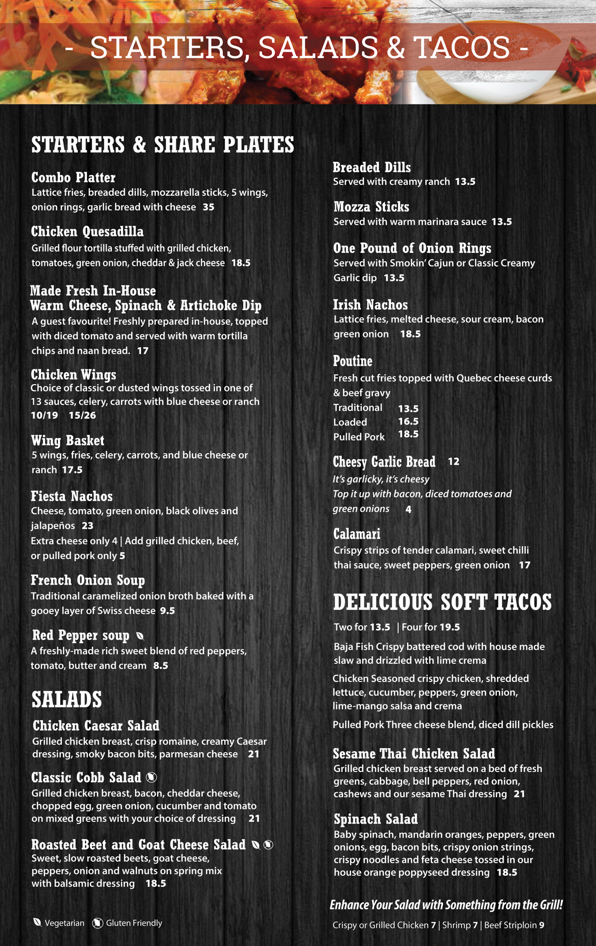 MENU JUMP TO STARTERS / MAINS / LUNCH / DESSERT / KIDS / BEVERAGES Applicable taxes extra.“Casey’s Kitchener” fries in trans-fat free oil. Some items may contain or have come in contact with nuts. Please ask your server.* Gluten-friendly bun available for substitution, please ask your server. ORDER NOW Contact (519) 745-6125 caseys@caseyskitchener.ca Address 1120 Victoria St N, Kitchener, ON N2B 3T2